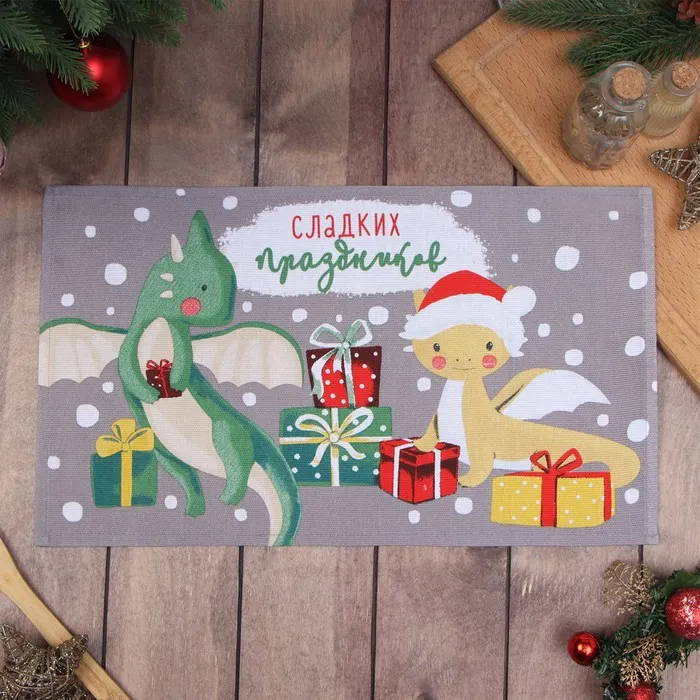 Полотенце новогоднее Доляна "Сладких подарков" 28х46 см, 100% хл, рогожка 164 г/м2