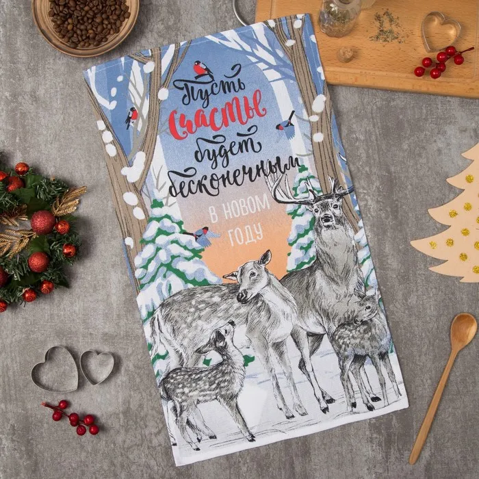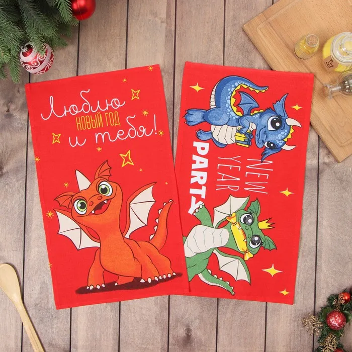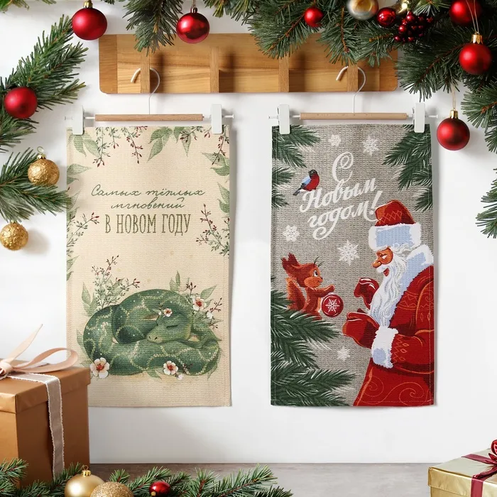 Набор полотенец Доляна "Новогодние пожелания" 28х46 см - 2 шт, 100% хл, вафля 160 г/м2