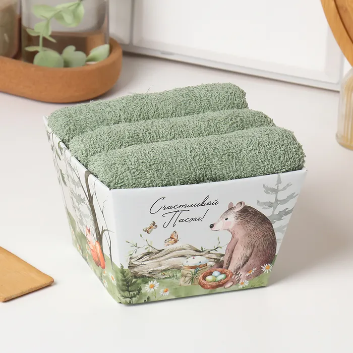 Набор полотенец Этель «Счастливой пасхи» 35×50 см - 3 шт., 100% хлопок, махра 340 г/м²