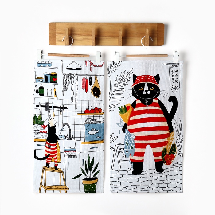 Набор кухонных полотенец Доляна «Котик на кухне» 35х60см-2шт, 100% хл