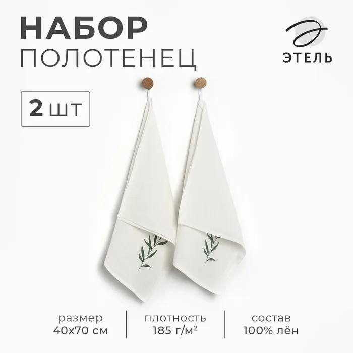 Набор полотенец Этель Linen natural 40х70см - 2 шт., 100% лён