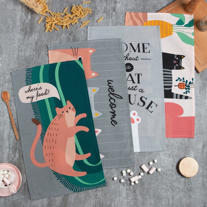 Набор кухонных полотенец Доляна Domestic cats 35х60 см - 4 шт., 100% хл