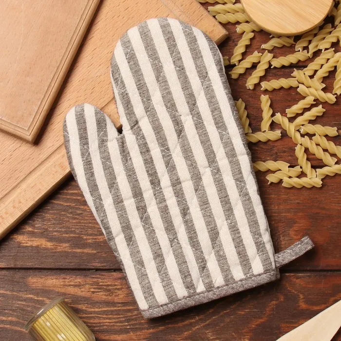Варежка-прихватка Доляна Полоса цв.коричневый 25х17см,50% п/э 50% хл