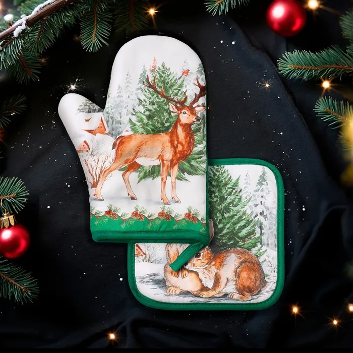 Набор кухонный «Новогодний лес» варежка-прихватка 20х28см, прихватка 19х19см,100%хлопок