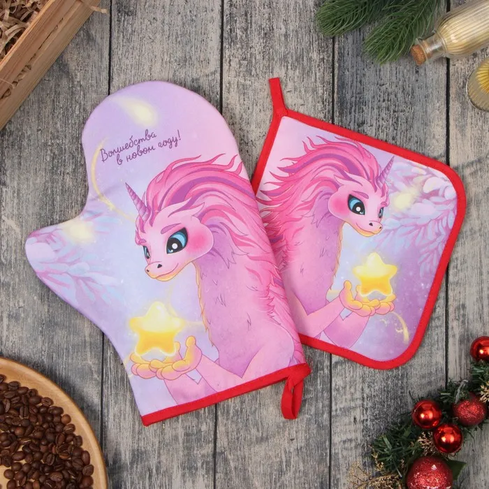 Набор кухонный новогодний Этель "Волшебства": прихватка 19х19 см, Варежка-прихватка новогодняя 20х28 см, 100% хл
