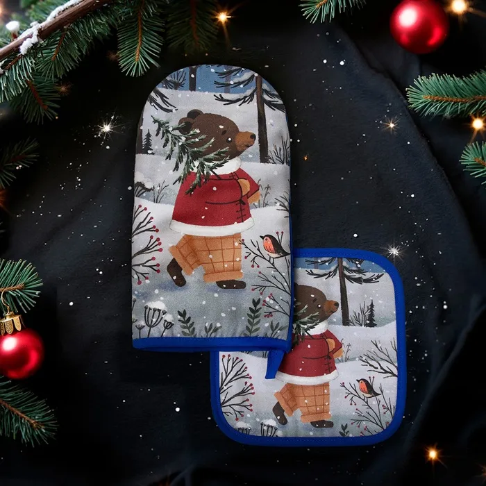 Набор кухонный Этель Forest bear варежка 15х28см, прихватка 19х19см,100%хл