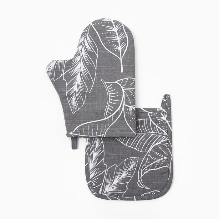 Набор кухонный Этель, цв. чёрный: варежка-прихватка 15х30 см, прихватка 18х21 см