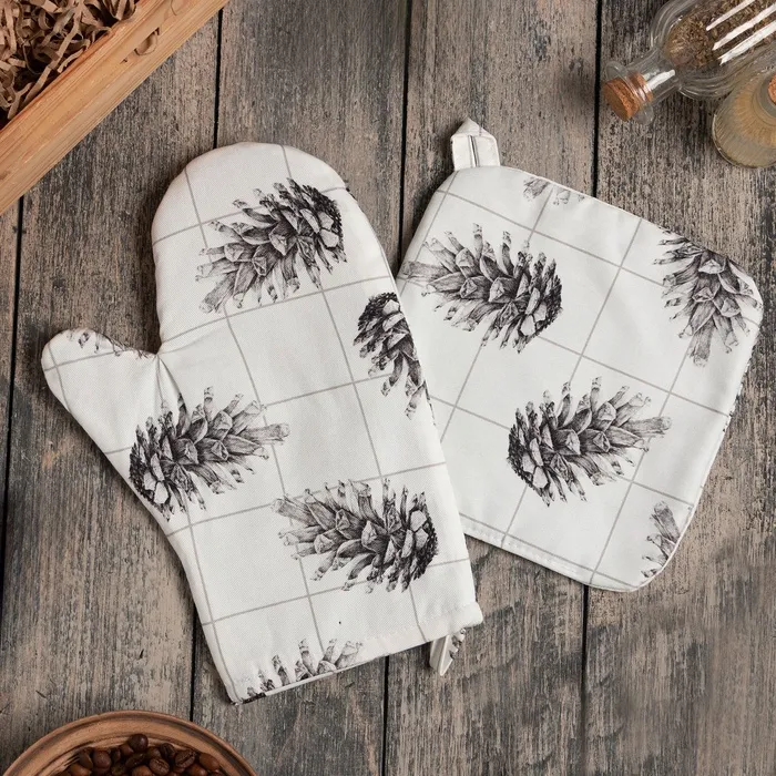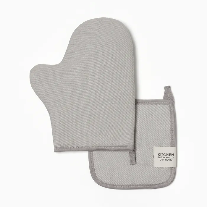 Набор кух. Этель Kitchen, цв. светло-серый, варежка-прихватка 18х29 см, прихватка 19х19 см,