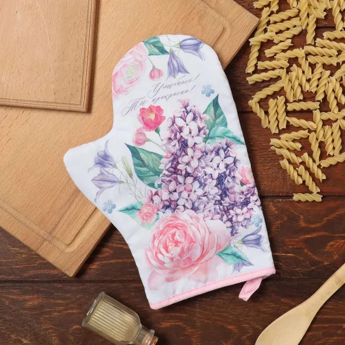 Варежка-прихватка Этель «Цветочек», 20×27 см, саржа 190 г/м², 100% хлопок