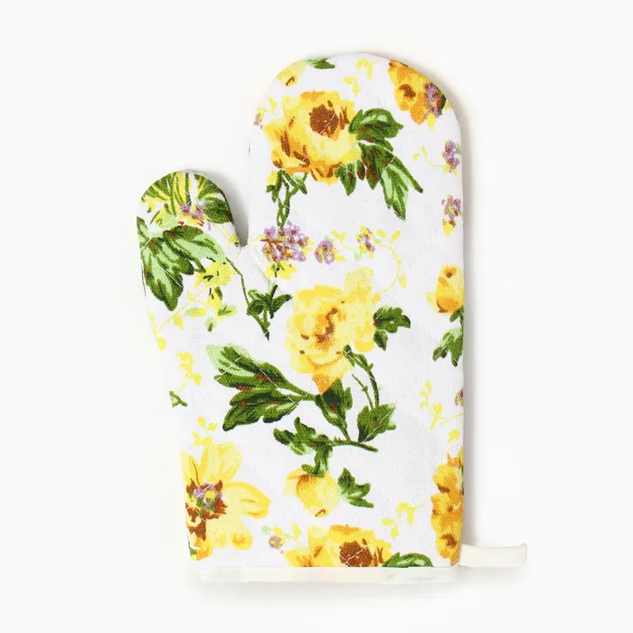 Варежка-прихватка Доляна Цветы, цвет жёлтый, 26*16см, 100%хл