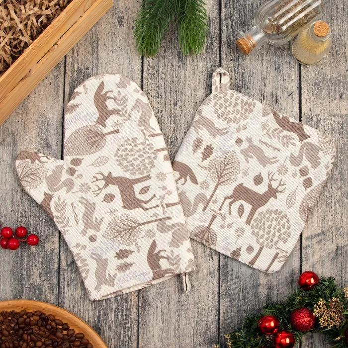 Набор кухонный Доляна Forest dwellers: варежка 20х27 см, прихватка 19х19 см, 100% хлопок