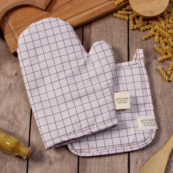 Набор кух. Этель "Клетка": варежка 20х28 см, прихватка 19х19 см, 80% хл, 20% пэ