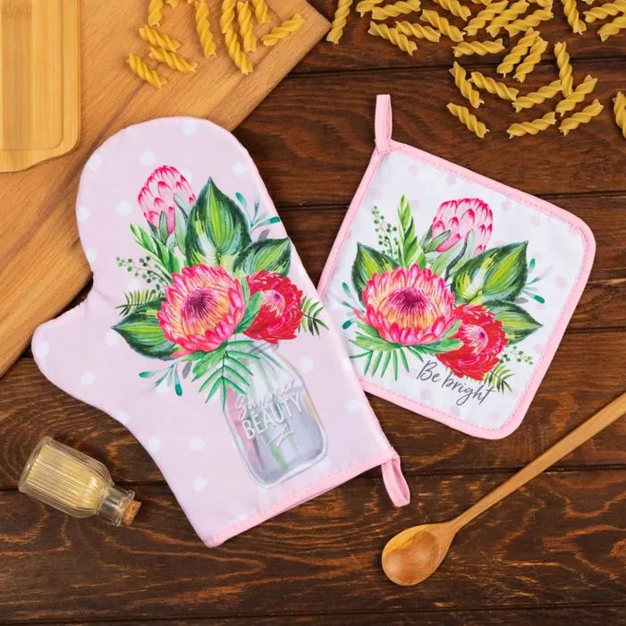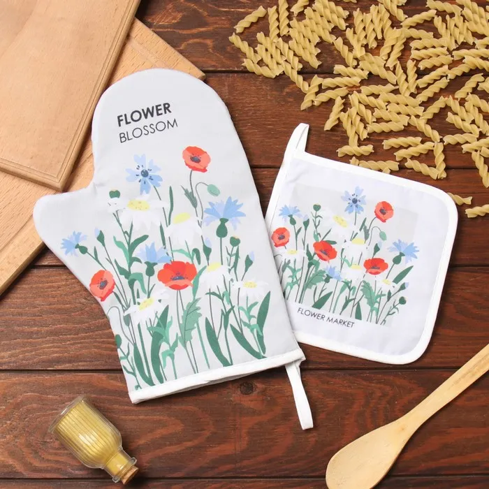 Набор кух. Доляна "Полевые цветы": варежка 20х28 см, прихватка 17х17 см, 35% хл, 65% пэ