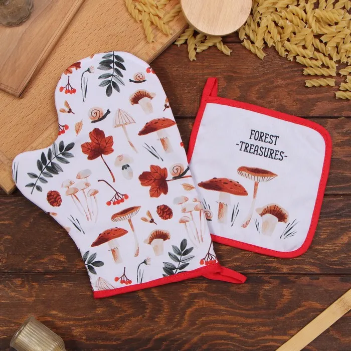Набор кух. Доляна "Грибы": варежка 20х28 см, прихватка 17х17 см, 35% хл, 65% пэ
