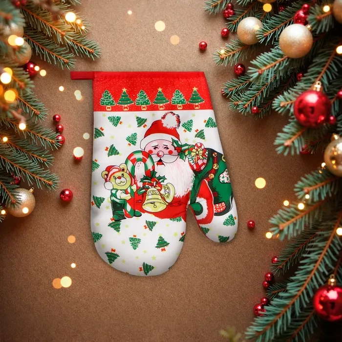 Варежка-прихватка новогодняя Доляна "Праздники" 26*16см, 100%п/э