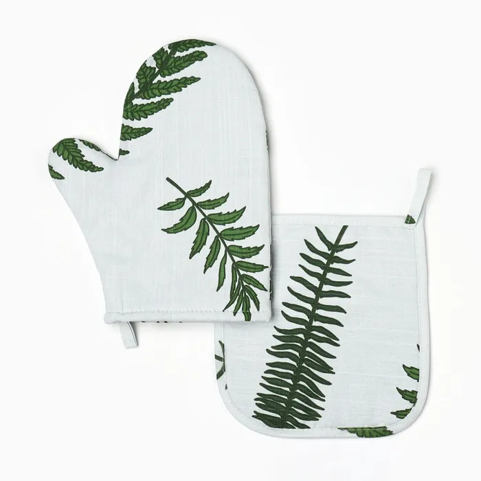 Набор кухонный "Папоротник": варежка 20х27 см, прихватка 19х19 см, репс 220 г/м2, 100% хлопок