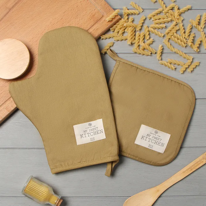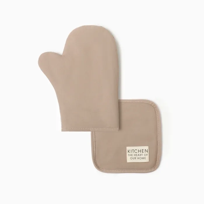 Набор кухонный Этель Kitchen, цвет бежевый, варежка-прихватка 18х29 см, прихватка 19х19 см