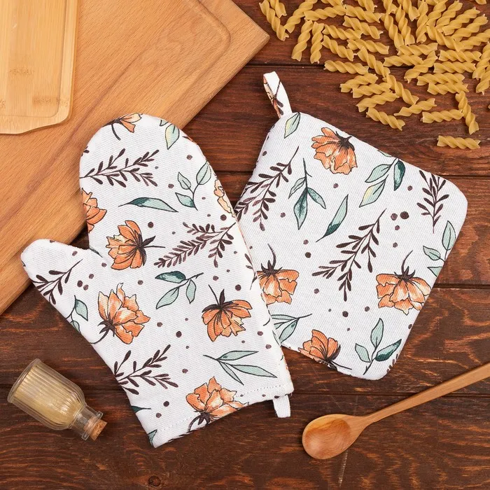 Набор кухонный Доляна Oleander: варежка 20х27 см, прихватка 19х19 см, 100% хлопок