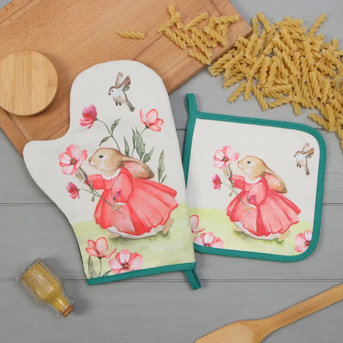 Набор кух. Этель "Кролик" варежка-прихватка 20х28см, прихватка 19х19см,100% хл
