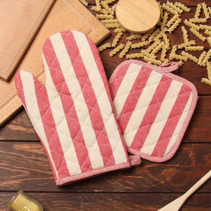 Набор кухонный Доляна Полоса цвет красный,варежка-прих.28х17см, прихватка 17х17 50% п/э 50% хлопок