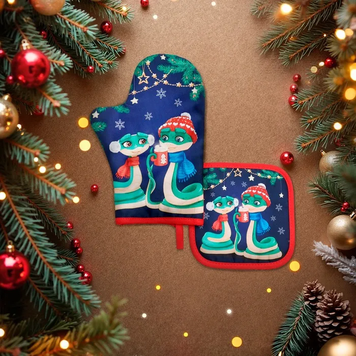 Набор кухонный Доляна "Теплых объятий": прихватка 17х17 см, Варежка-прихватка новогодняя 20х28 см, 35% хлопок
