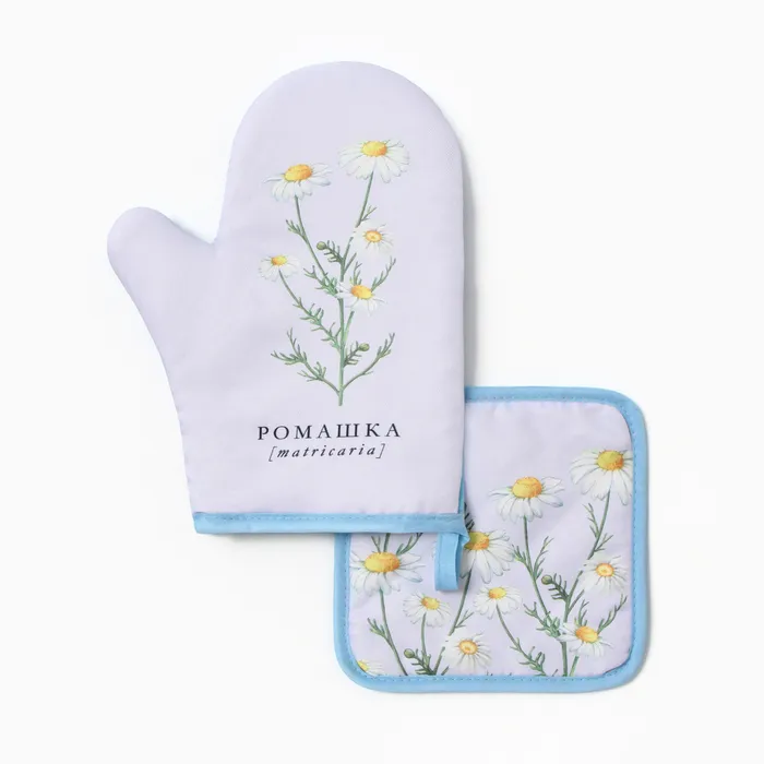 Набор кухонный "Ромашки" варежка-прихватка 20х27см, прихватка 17х17см 100% п/э