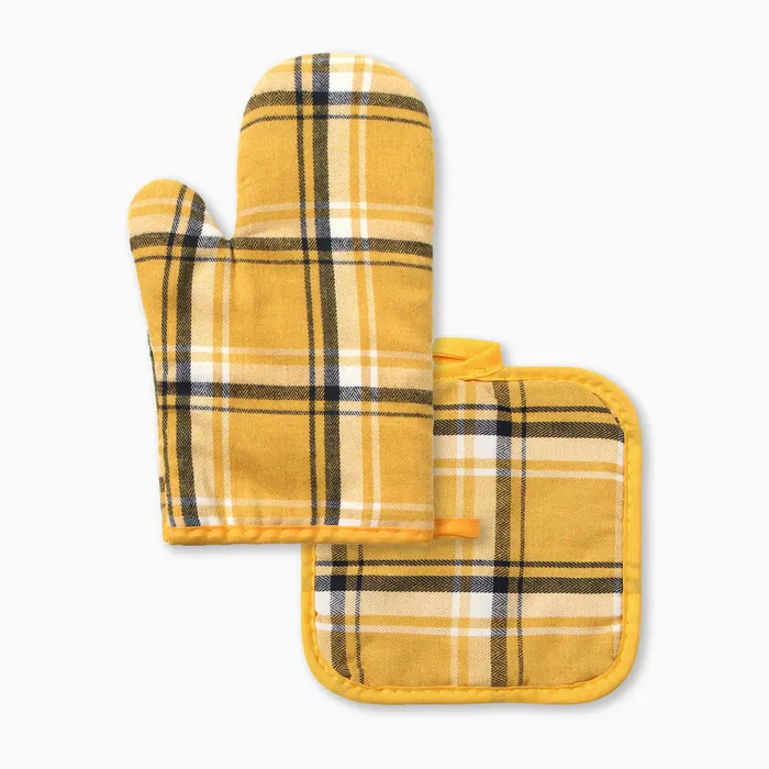 Кухонный набор Этель «Клетка», цвет жёлтый, прихватка 17×17 см, варежка-прихватка 26×16 см,100%п/э