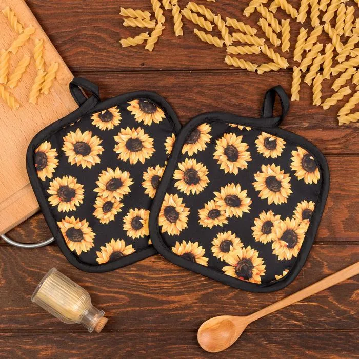 Кухонный набор Доляна «Подсолнухи», прихватка 17×17 см - 2 шт.,100% п/э