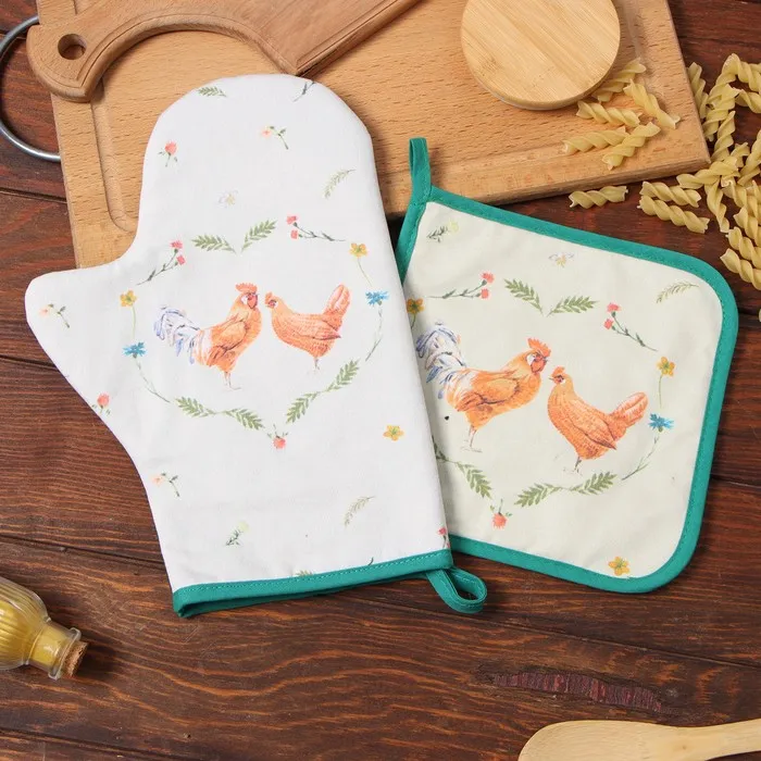 Набор кух. Этель "Курочка и петух" варежка-прихватка 20х28см, прихватка 19х19см,100% хл