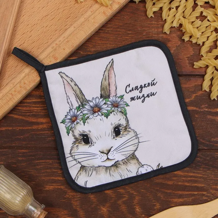 Варежка-прихватка Этель "Кролики" 20х28см,саржа, 100% х/л, ватин 250г/м2