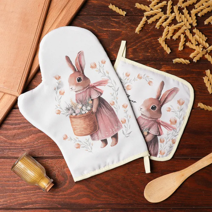 Набор кух. Доляна "Зайчиха": варежка 20х28 см, прихватка 17х17 см, 35% хл, 65% пэ