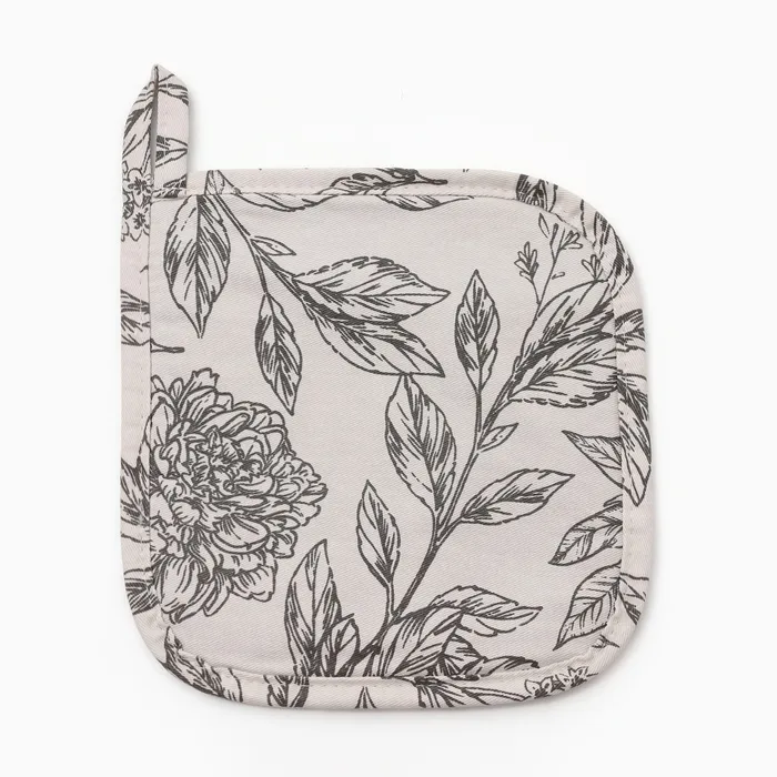 Прихватка Этель "Black flowers" 19х19см,100% х/л, саржа 190 г/м2