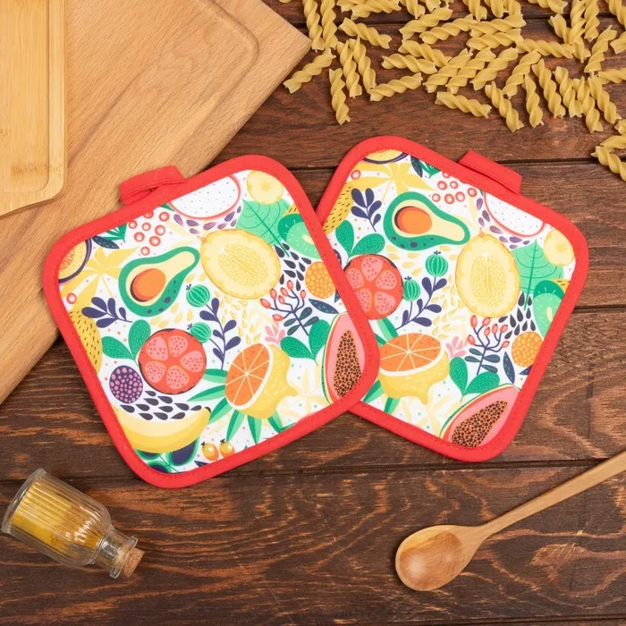 Кухонный набор (2 предмета) Доляна «Фрукты», прихватка 17х17 см, 100% п/э