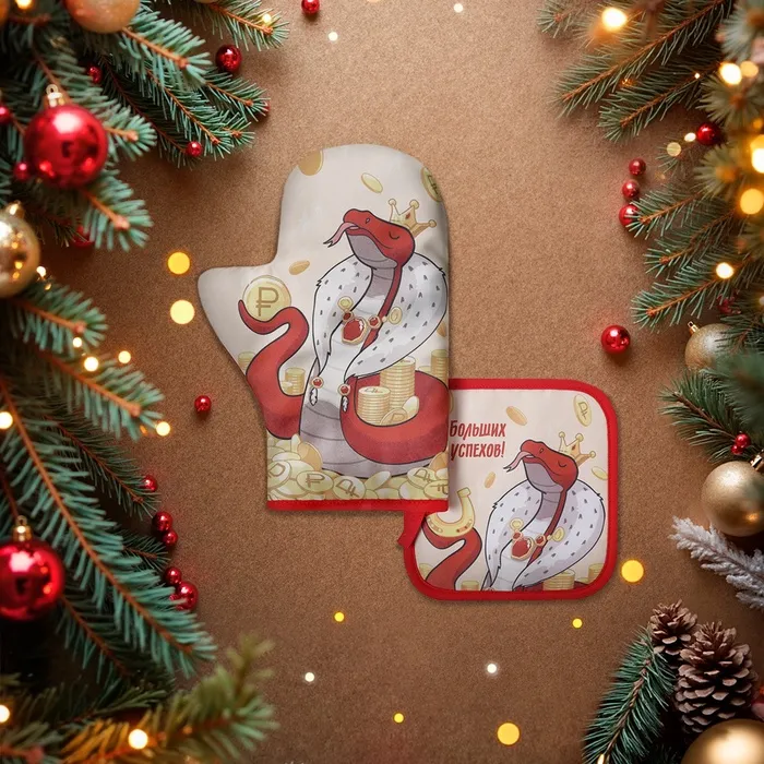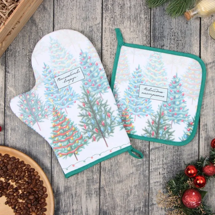 Набор кухонный Доляна "Больших успехов": прихватка 17х17 см, Варежка-прихватка новогодняя 20х28 см, 35% хлопок