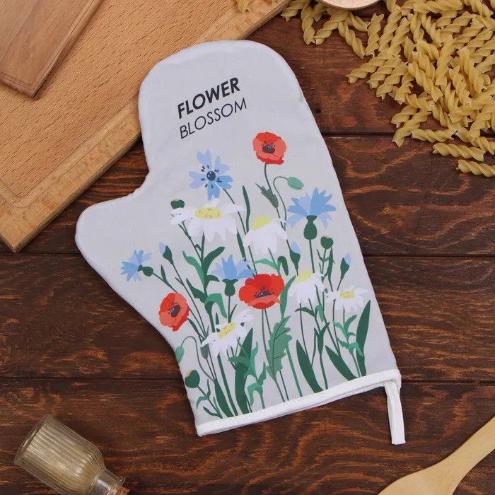 Варежка-прихватка Доляна "Полевые цветы" 20х28 см, 35% хл, 65% пэ, ватин 250 г/м2