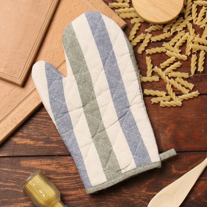 Варежка-прихватка Доляна «Полоса», син/зел, 28×17 см, 50% п/э, 50% хлопок
