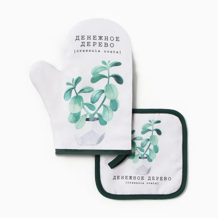 Набор кухонный "Денежное дерево" варежка-прихватка 20х27см, прихватка 17х17см 100% п/э