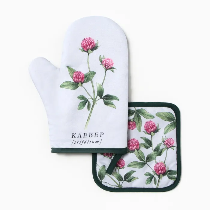 Набор кухонный "Клевер" варежка-прихватка 20х27см, прихватка 17х17см 100% п/э