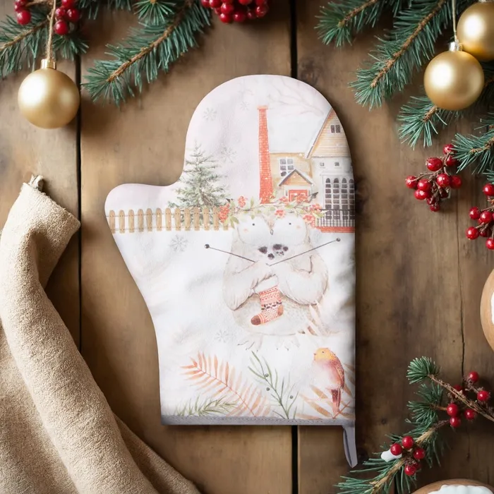 Варежка-прихватка новогодняя Этель "Звери в городе" 20х28 см, 100% хл, ватин 250 г/м2