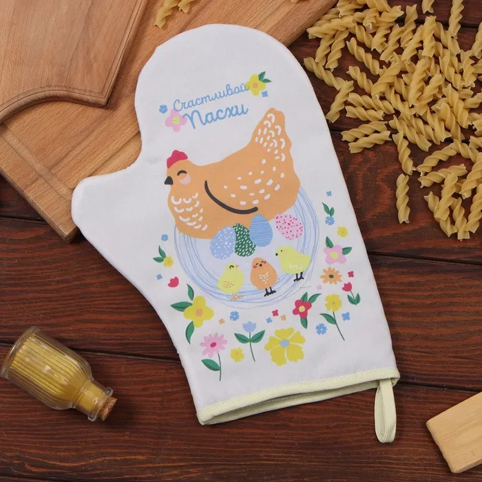 Варежка-прихватка Доляна "Курочки" 20х28 см, 35% хл, 65% пэ, ватин 250 г/м2