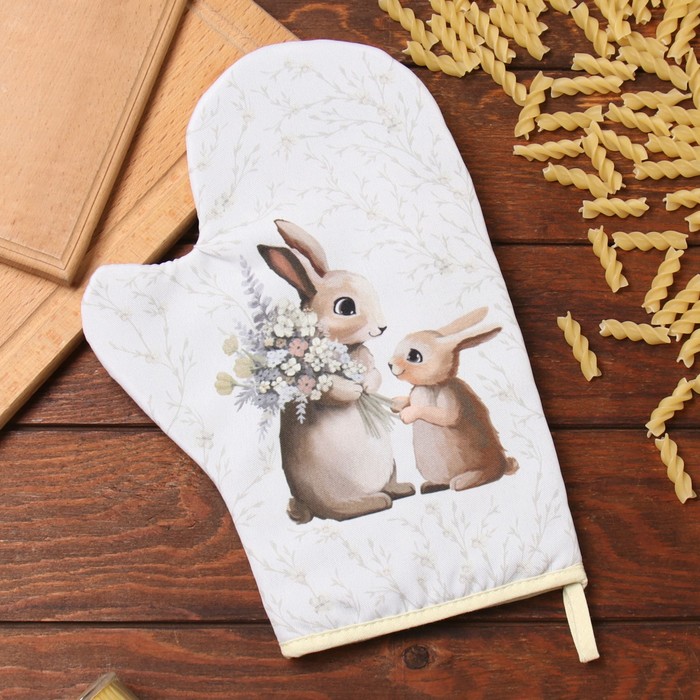 Варежка-прихватка Доляна "Зайчата" 20х28 см, 35% хл, 65% пэ, ватин 250 г/м2