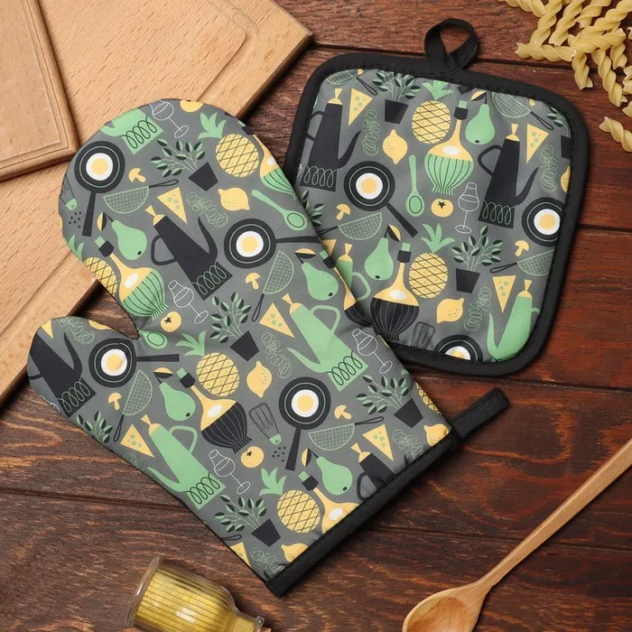 Кухонный набор 2 предмета Доляна Кухня, прихватка 17*17 см, варежка 26*16 см,100% п/э