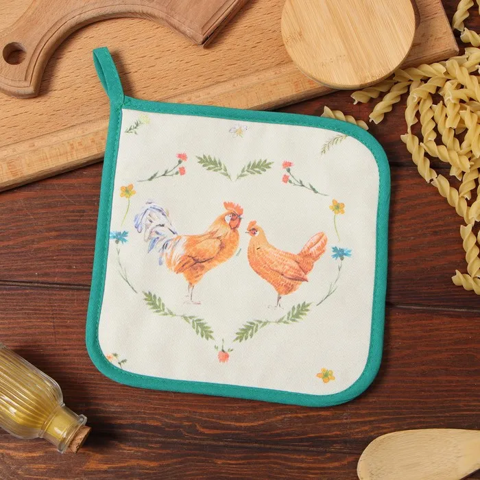 Прихватка Этель "Курочка и петух" 19х19 саржа,100% х/л,ватин 250г/м2