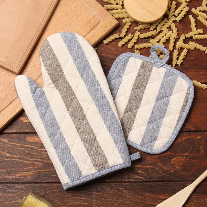 Набор кух.Доляна Полоса цв.сер/син,варежка-прих.28х17см, прихватка 17х17 50% п/э 50% хл