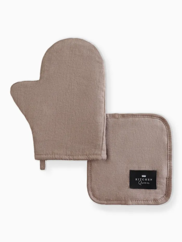Набор кухонный Этель Woody: варежка 20×28 см, прихватка 19×19 см, лён 100%,190 г/м²