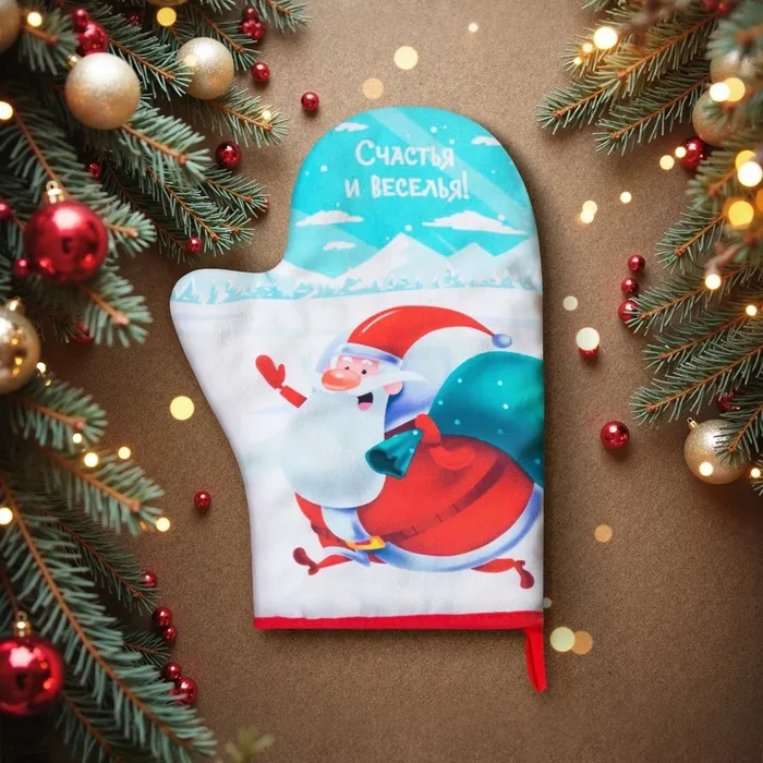 Варежка-прихватка новогодняя "With new happiness" 20х28см,35% х/л,65% п/э,ватин 250г/м2