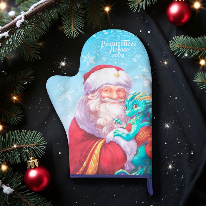 Варежка-Прихватка новогодняя "Этель" "Сказочный гость" 20х28 см, 100% хл, ватин 250 г/м2