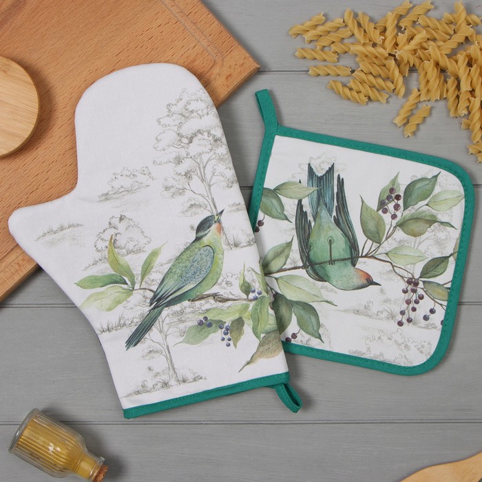 Набор кух. Этель "Птицы" варежка-прихватка 20х28см, прихватка 19х19см,100% хл