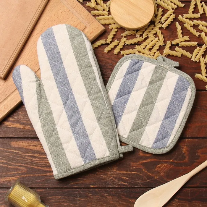 Набор кухонный Доляна, полоса син/зел, варежка-прихватка 28×17 см, прихватка 17×17 см, 50% п/э, 50% хлопок