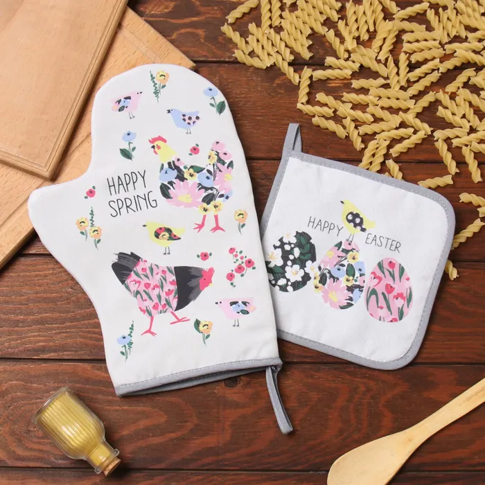 Набор кух. Доляна "Яркой пасхи": варежка 20х28 см, прихватка 17х17 см, 35% хл, 65% пэ
